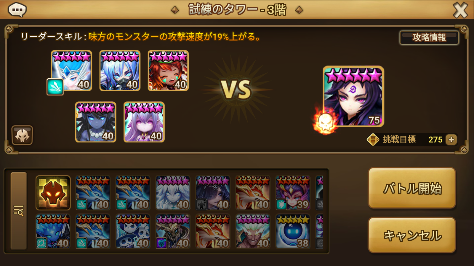 ボス戦:デバフが付くと闇海王(マナナン)の火力が激増するので、闇魔導師(キキ)をうまく足止めしましょう。