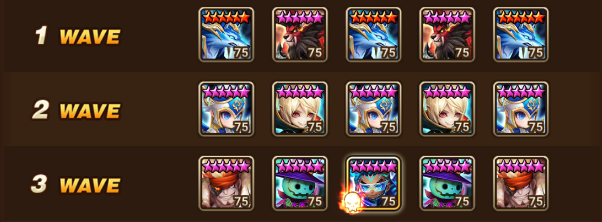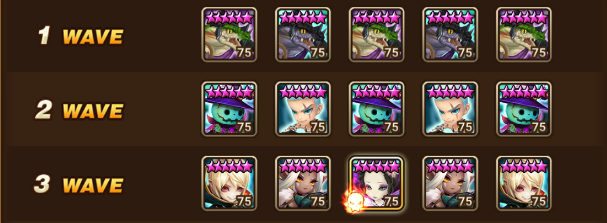 2戦目:カミラの火力が高くクリティカルを出すとデバフが解除されるので、攻撃ゲージ減少が有効です。忘却を入れると非常に楽になります。