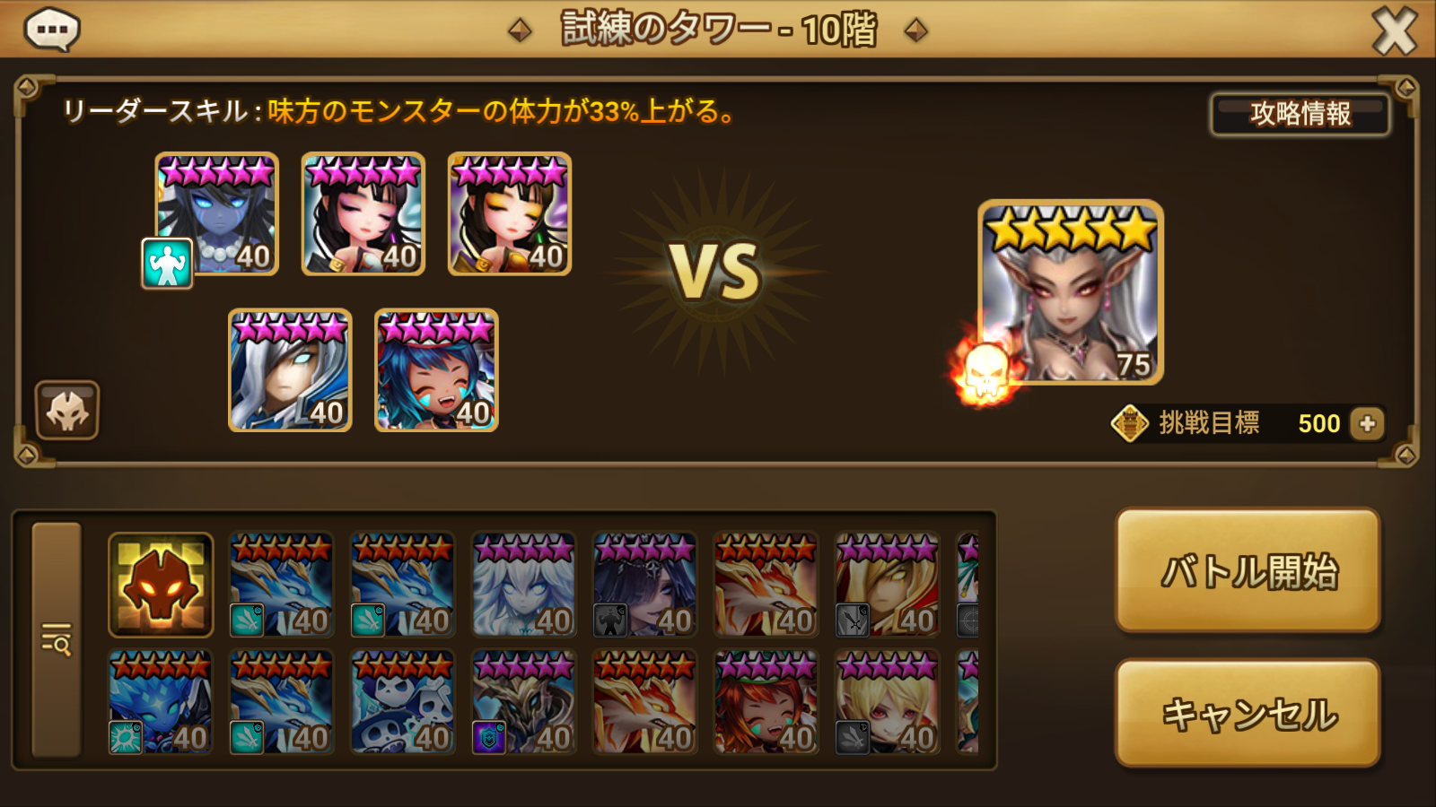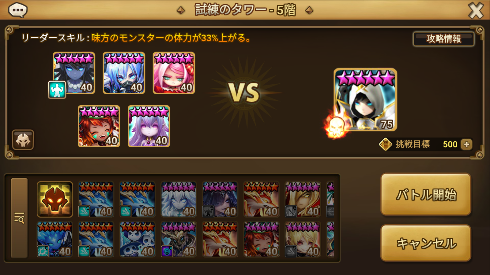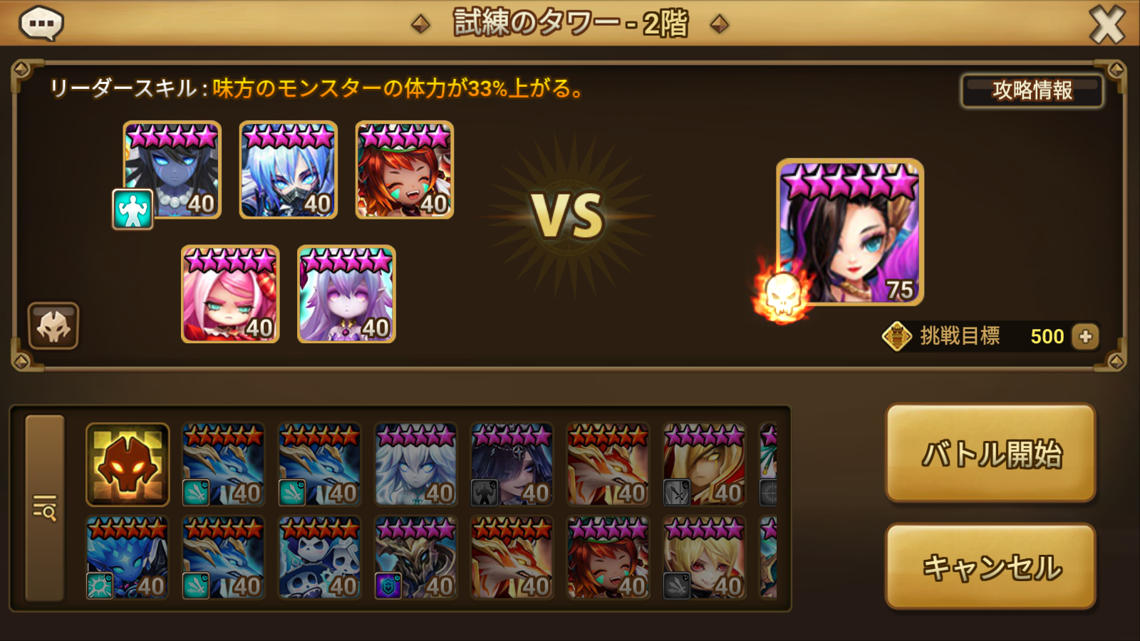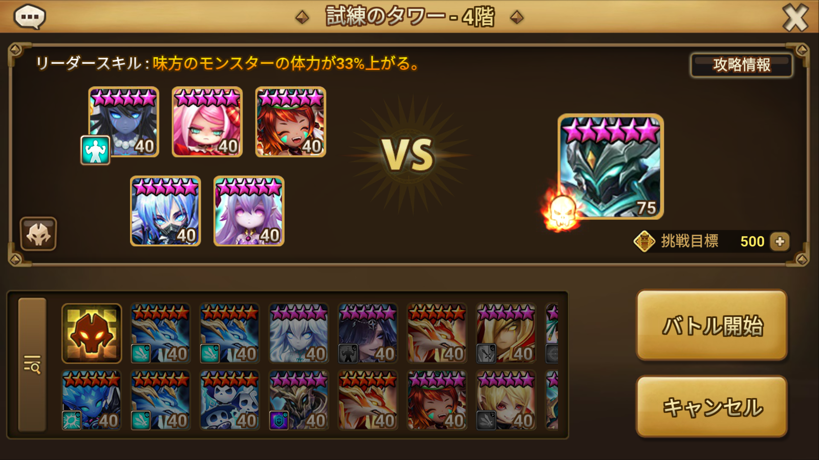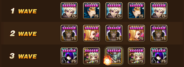 ボス戦:回復力が高い編成です。風尨犬使い(有那)から倒すことをお勧めします。ボスの光ドレイクウォリアー(フリードリオン)は2回目以降デバフを入れると回復されるため、デバフが少ない編成で挑むと良いでしょう。