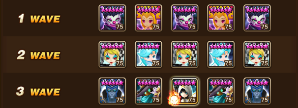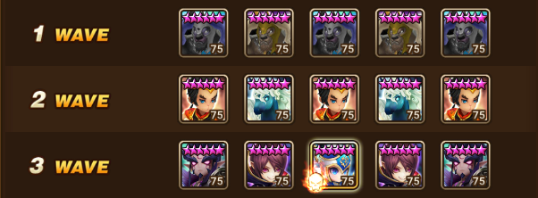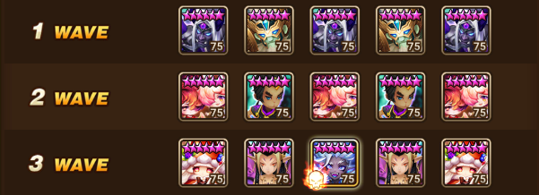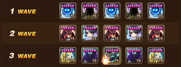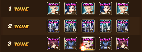ボス戦:デバフが有効ではなく、闇イフリート(ヴェラモス)をうまく倒す必要があります。風陰陽師(妓王)はパッシブで攻撃ゲージが増加するため行動回数が多くなります。火力は高くありませんがデバフに注意をしましょう。