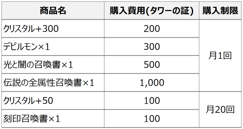 専用アイテム「タワーの証」と【試練のタワーショップ】追加