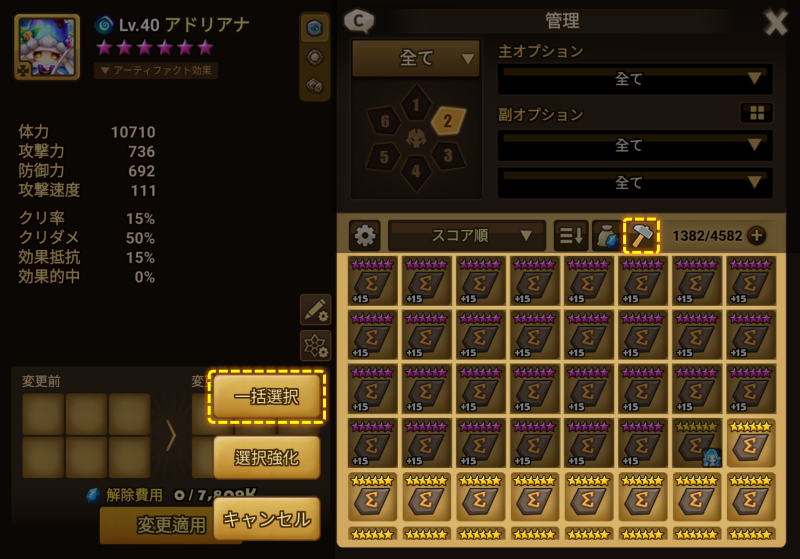 メニューに+12強化未満のルーンを自動的に30個まで選択する【一括選択】オプション追加