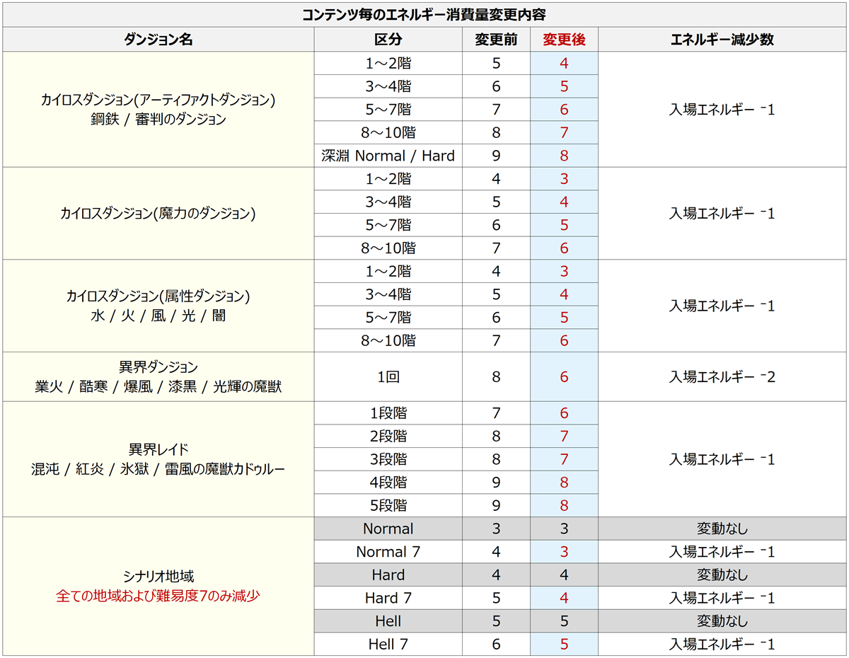 - 次元ホールでのバトルで消費するエネルギーが調整されます。
