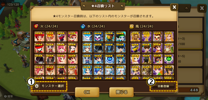 召喚で★4モンスターが出現する場合、自分で作成した火/水/風属性の純正★4モンスターリストの中から1体が出現する「★4召喚リスト指定機能(常時利用可能)」が追加されます。
