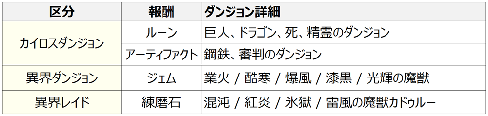 • 次元ダンジョンと異次元レイドの1~5段階の上位アイテムの登場率が上方調整されます。