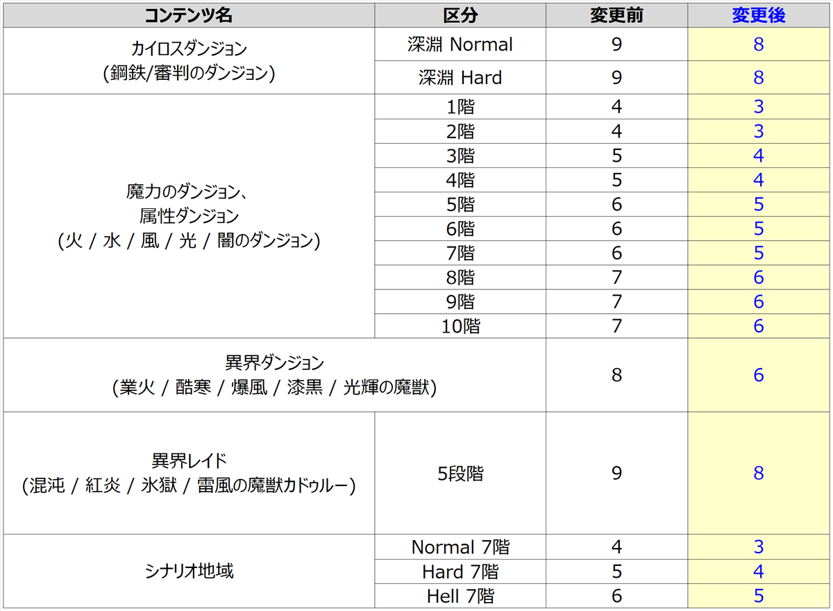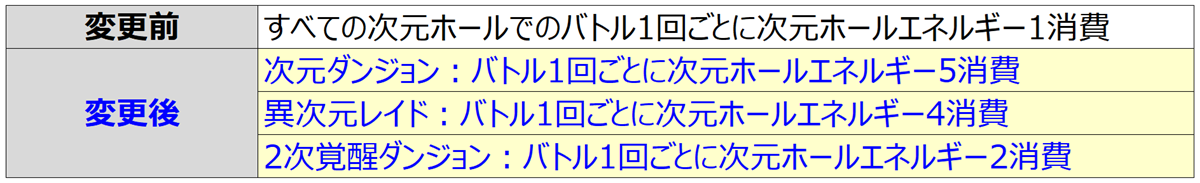 • 次元ホールコンテンツ入場時の消費エネルギーが調整されます。