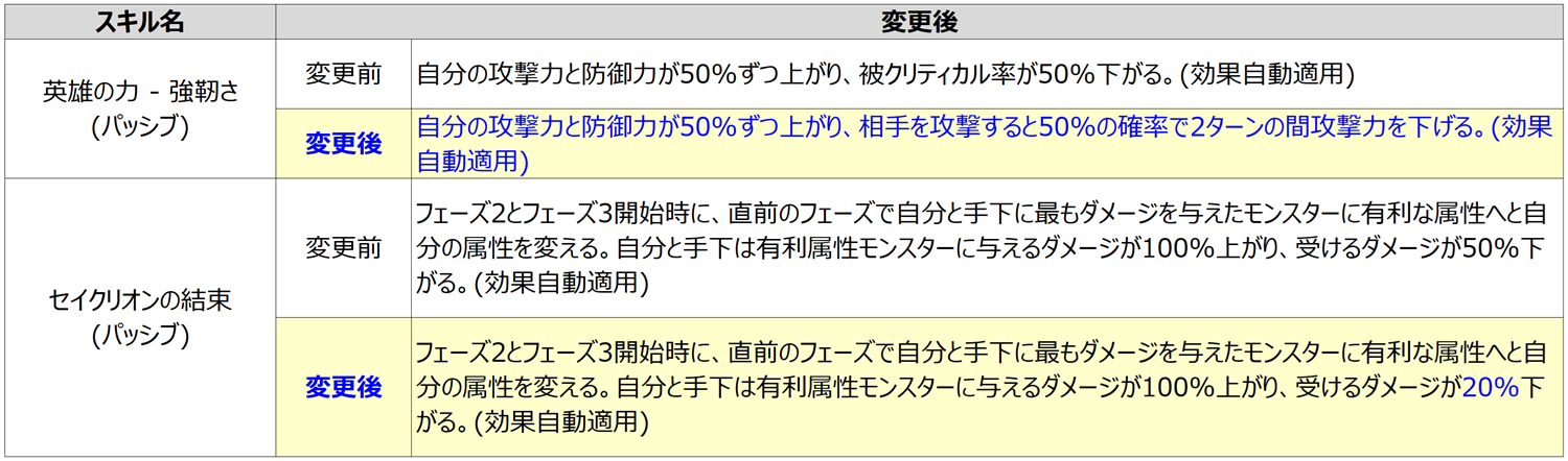 • 異次元・セイクリオン ・忘れられし英雄の古城の古代の眷属のスキルが以下のように変更されます。