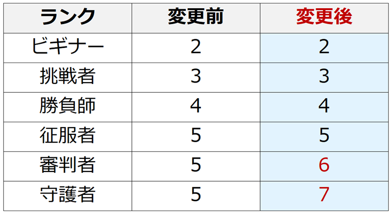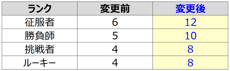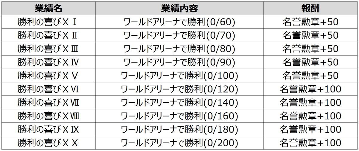 • アリーナ勝利時のランク別名誉ポイントの獲得量が増えます。