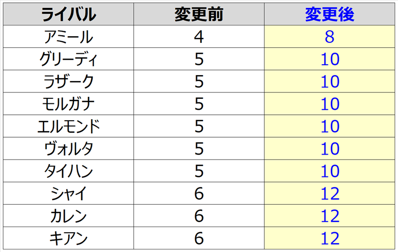 • アリーナ出場権のチャージ時間が変更されます。