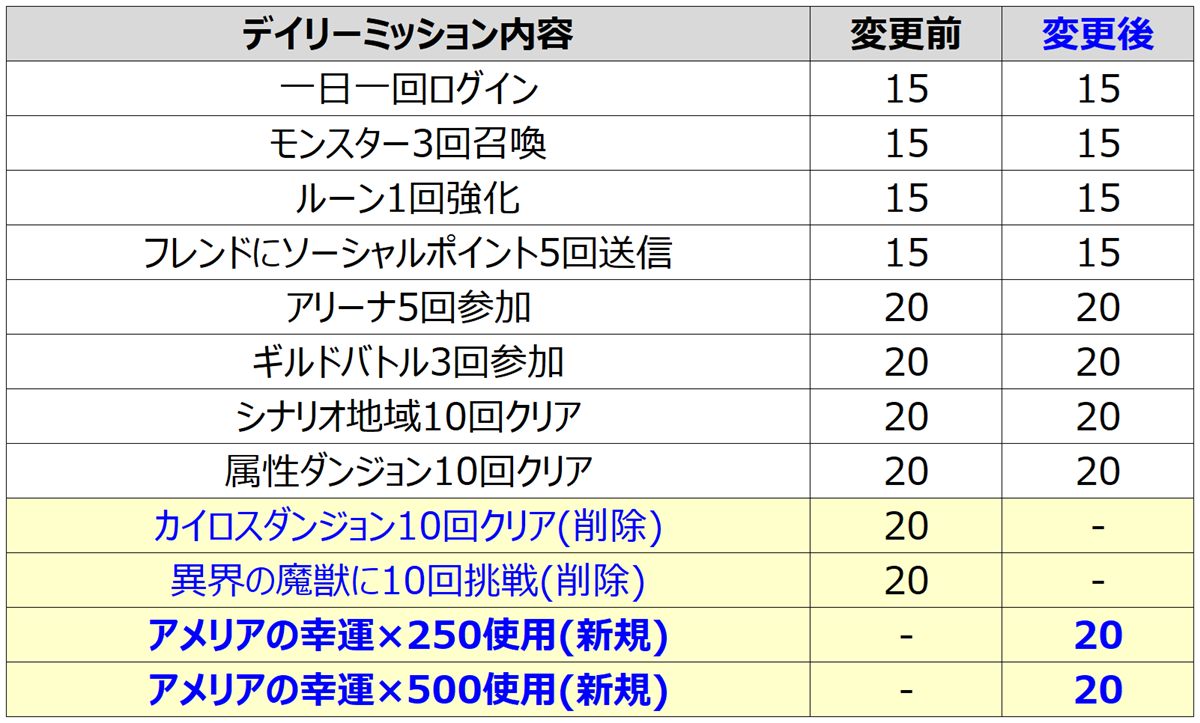 デイリーミッション改編