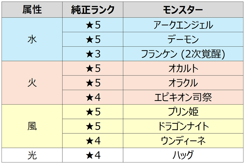 火/水/風属性の純正★5モンスター合計15体で構成された、専用召喚リストが追加されます。