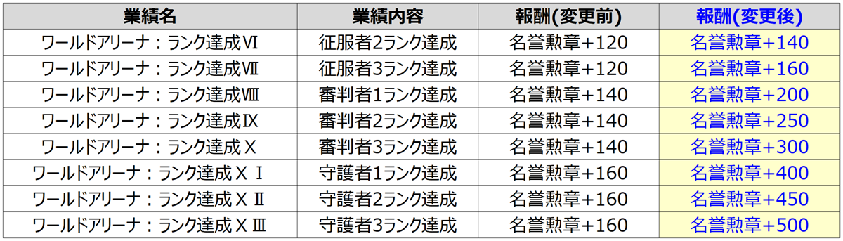 【ワールドアリーナ報酬】関連の改編事項