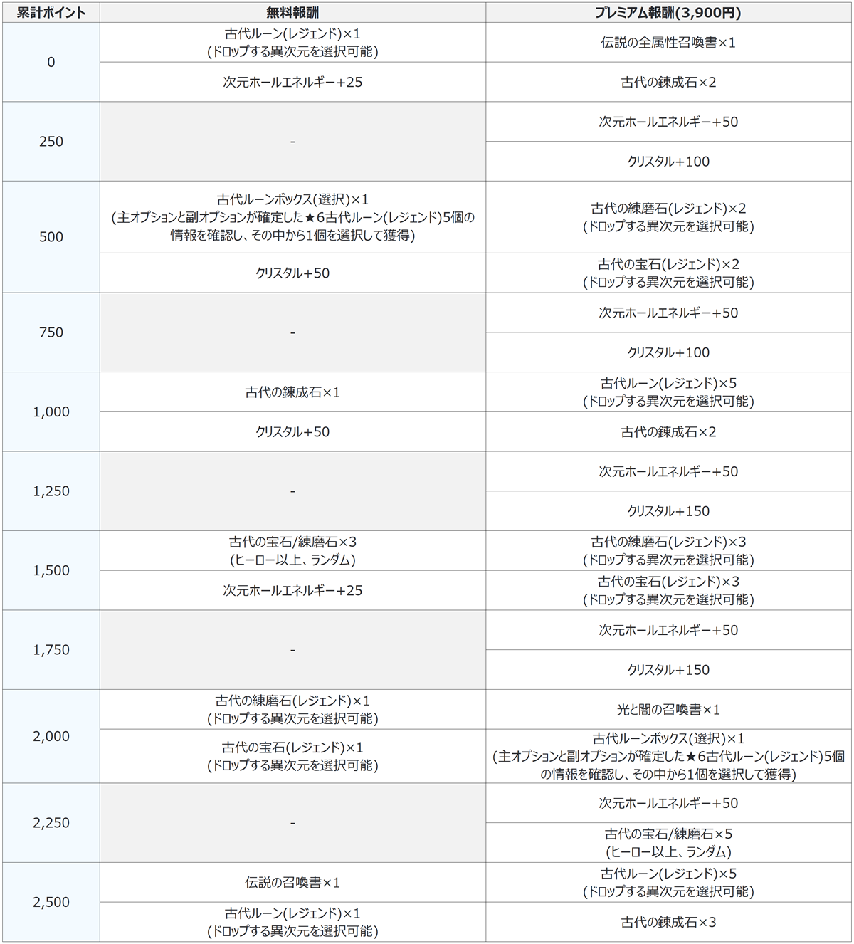 ・1ヶ月間に消費した次元ホールエネルギーの量に応じてパスポイントを獲得し、合計獲得ポイントに応じて各区間の報酬をすぐに獲得できます。