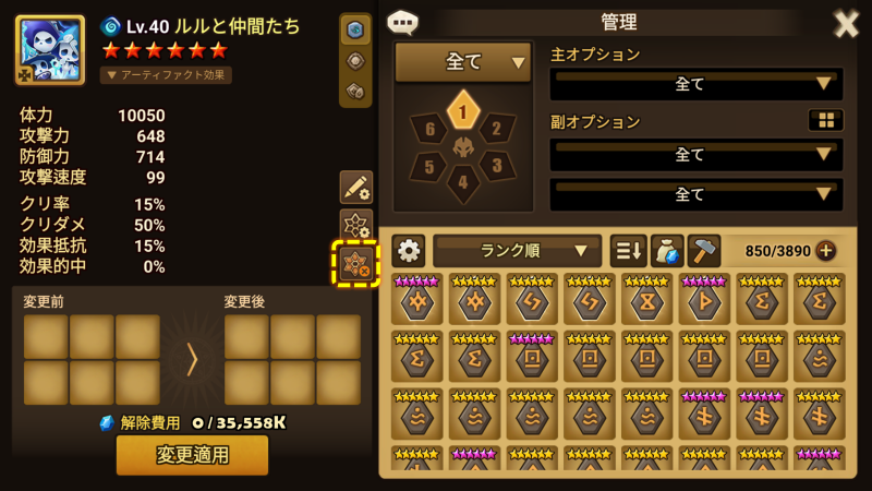 - 【モンスター/ワールドアリーナ/占領戦】 モンスター管理画面で【攻撃速度順】、【ルーンスコア順】に並び替えられるようになります。