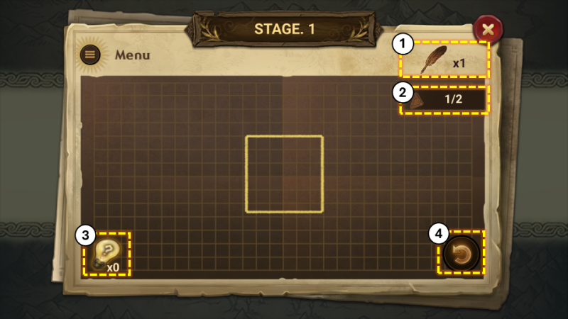 各ステージは、表示された図形に決められた回数分の線を引いて分割する形式で進行します。